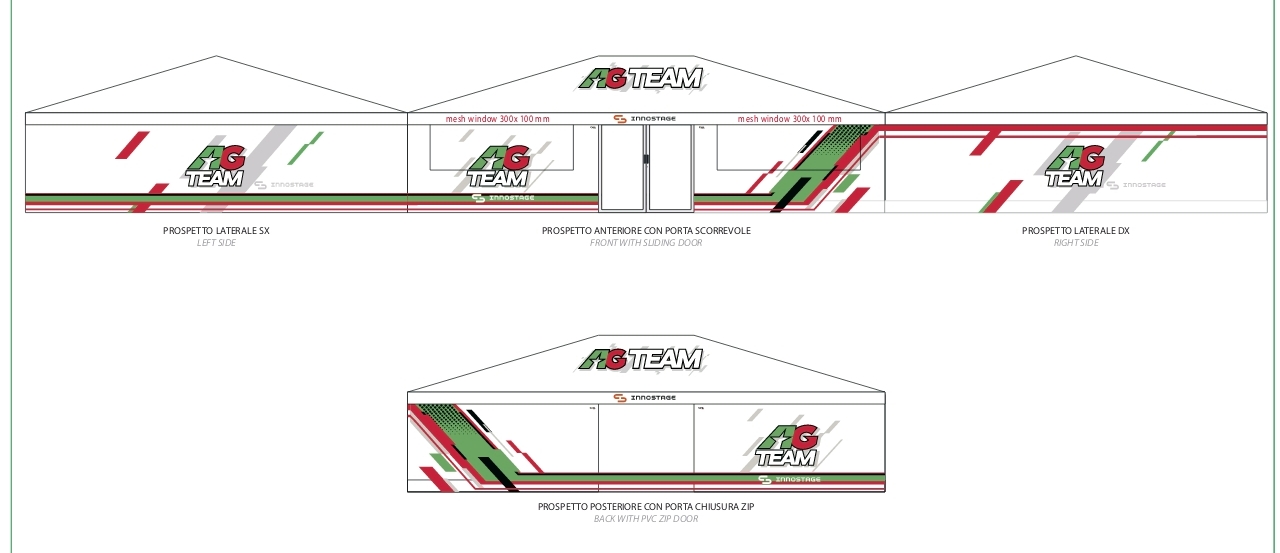- Отличительной особенностью этой модели является раздвижная дверь из алюминия с поликарбонатными панелями (которые можно персонализировать с помощью УФ-печати) на передней стороне палатки.